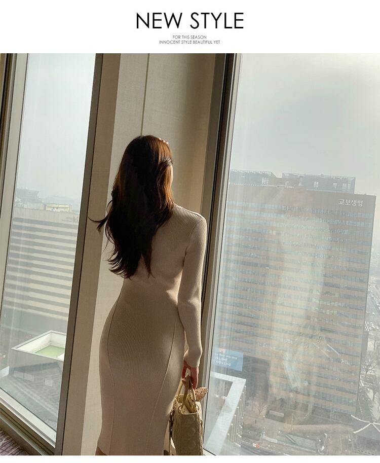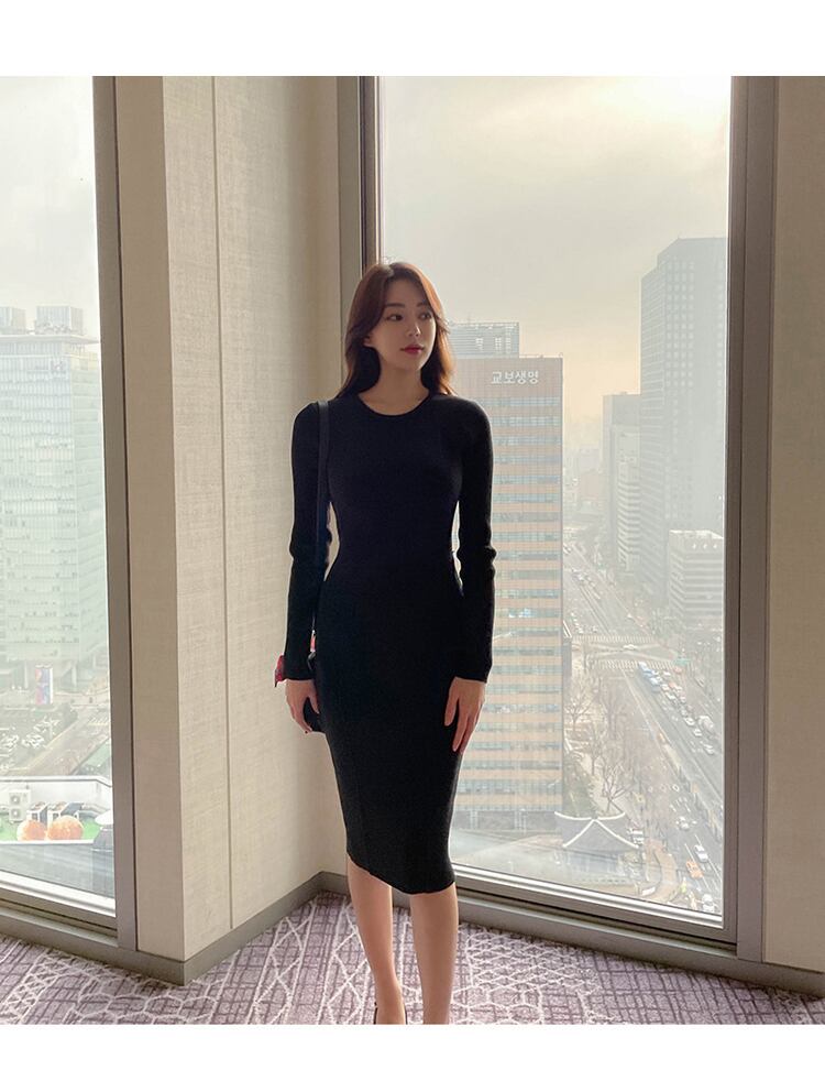 エラスティック 伸縮 オータム 秋物 ドレス Oネック 会社 学校 通勤や通学にも A-HHan63068573861