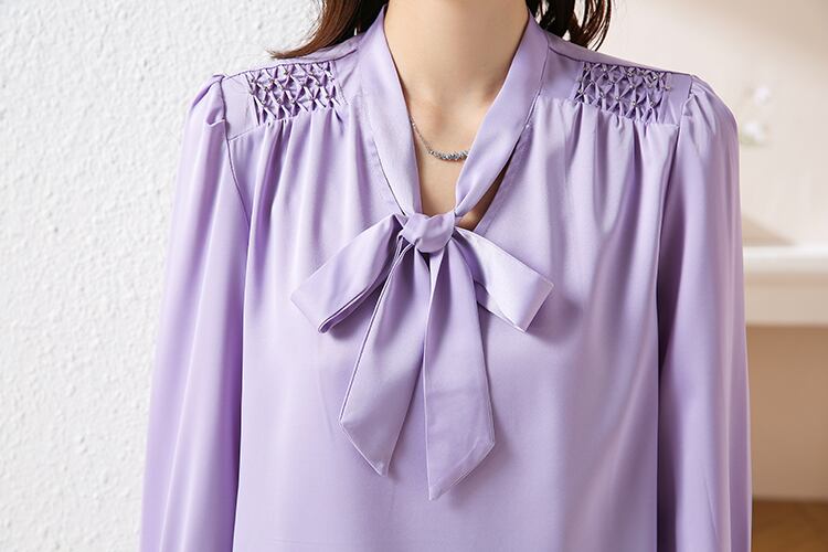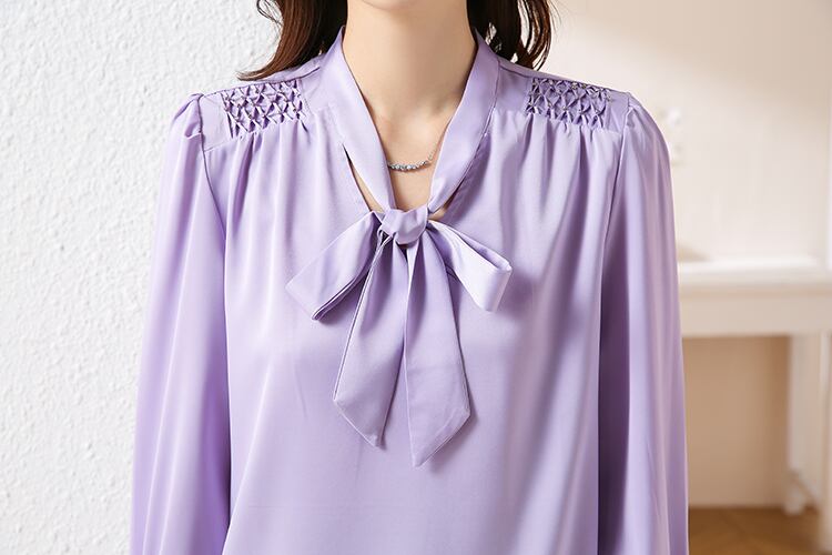 シフォン リボン レース シャツ ブラウス オータム 秋物 Vネック レースアップ ビンテージ 会社 学校 通勤や通学にも A-HHan29028813154