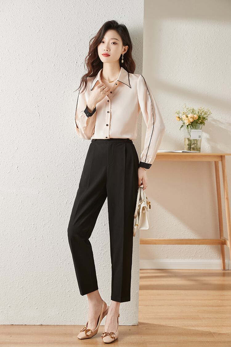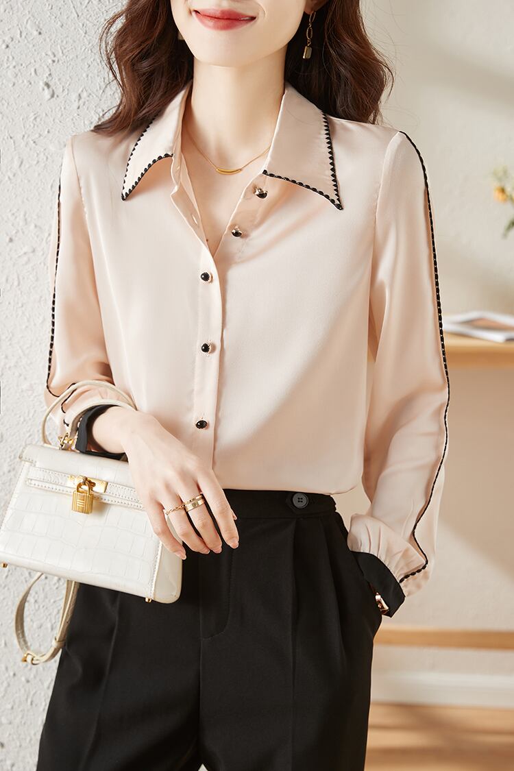 ロング シフォン 長袖 シャツ ブラウス オータム 秋物 サテン ビンテージ 会社 学校 通勤や通学にも A-HHan34221038487