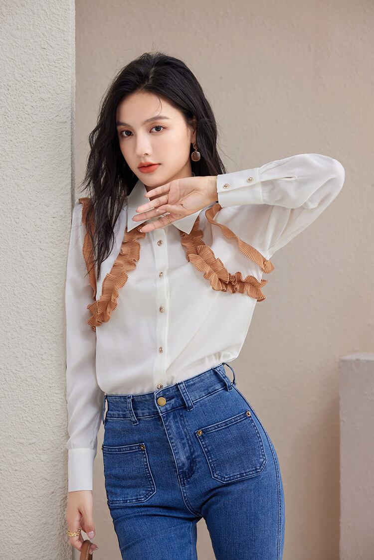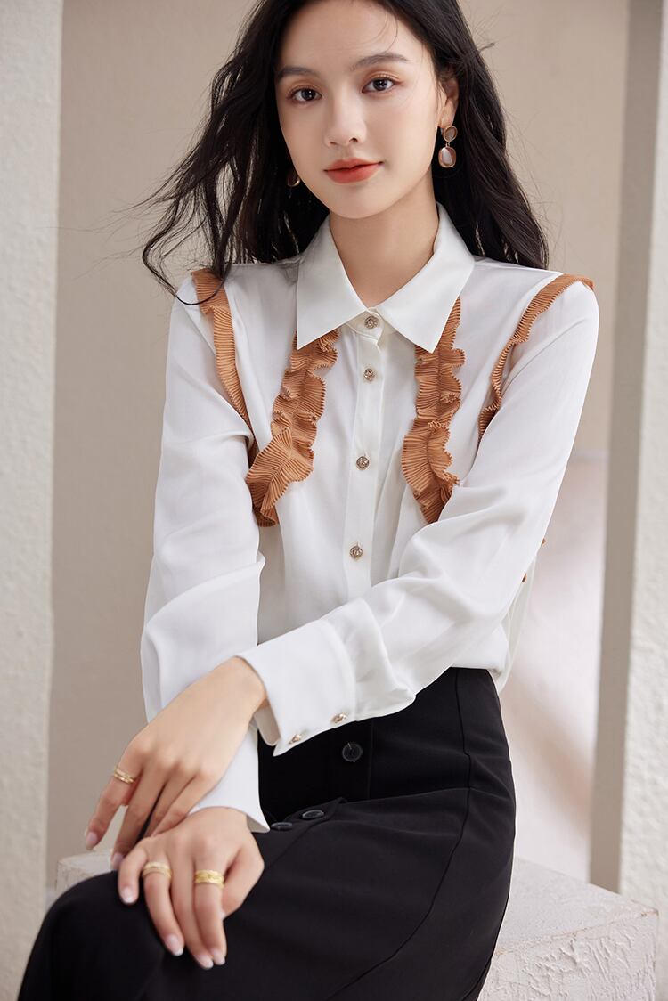 ロング ホワイト シフォン 長袖 シャツ ブラウス オータム 秋物 A-HHan90050444616