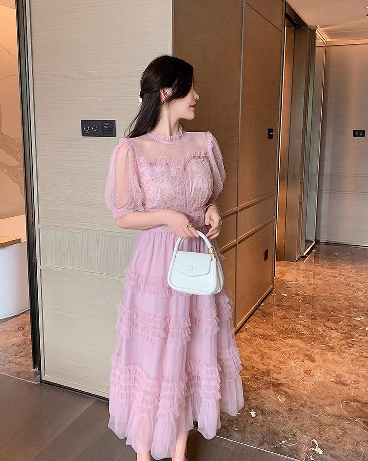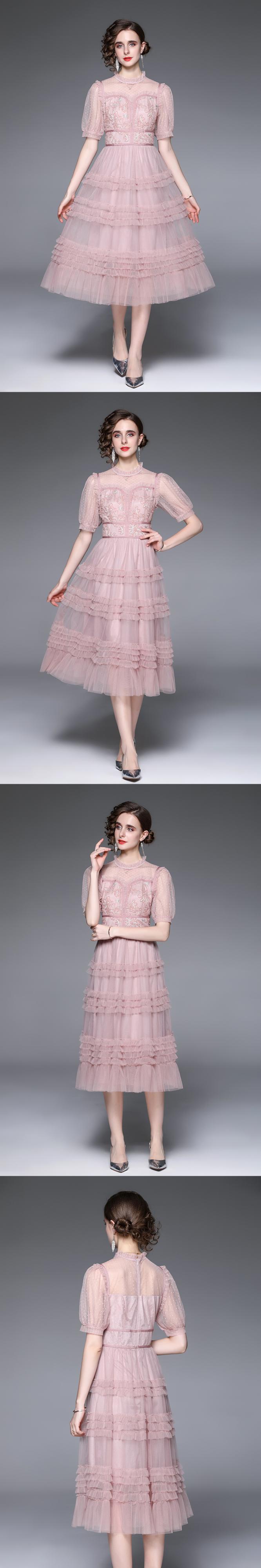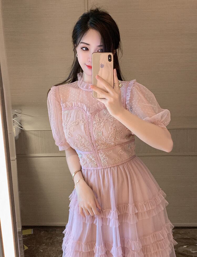 ショート ピンク レトロ レース 半袖 ハーフスリーブ カジュアル サマー 夏物 メッシュ A-HHan20686689953