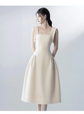 レトロ サマー 夏物 ドレス ノースリーブ Aライン スクウェア 会社 学校 通勤や通学にも A-HHan31306526454