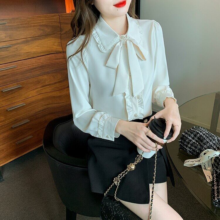 シフォン リボン シャツ ブラウス オータム 秋物 ビンテージ 会社 学校 通勤や通学にも A-HHan60607641130