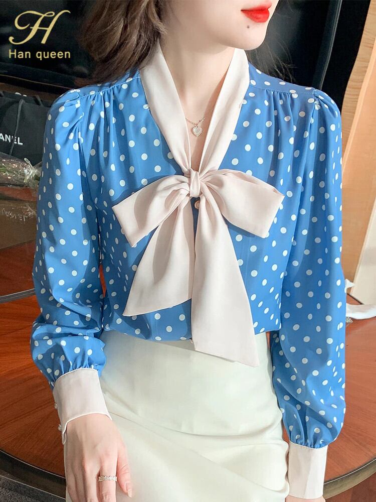 ロング リボン レース 長袖 ブラウス サテン レースアップ ビンテージ 会社 学校 通勤や通学にも A-HHan74581487585