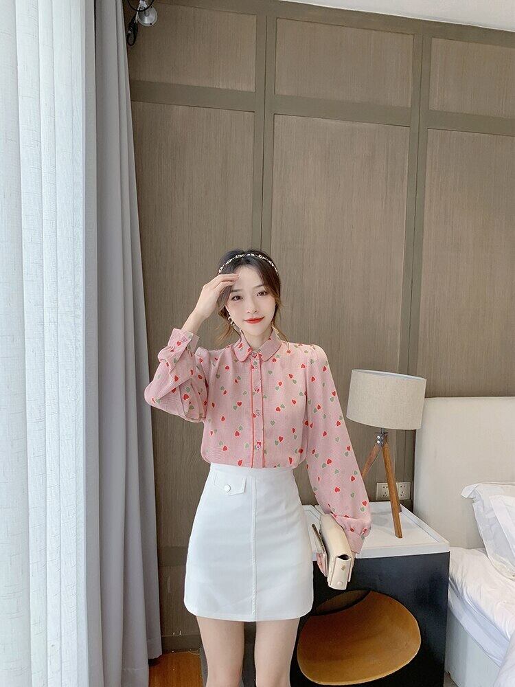 ロング シフォン 長袖 ブラウス 大人ガーリー スウィート キュート カジュアル オータム 秋物 会社 学校 通勤や通学にも A-HHan64868757680