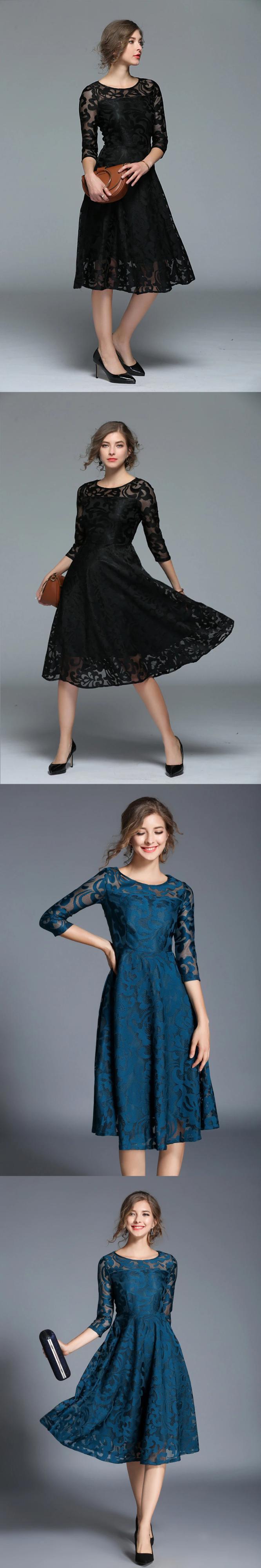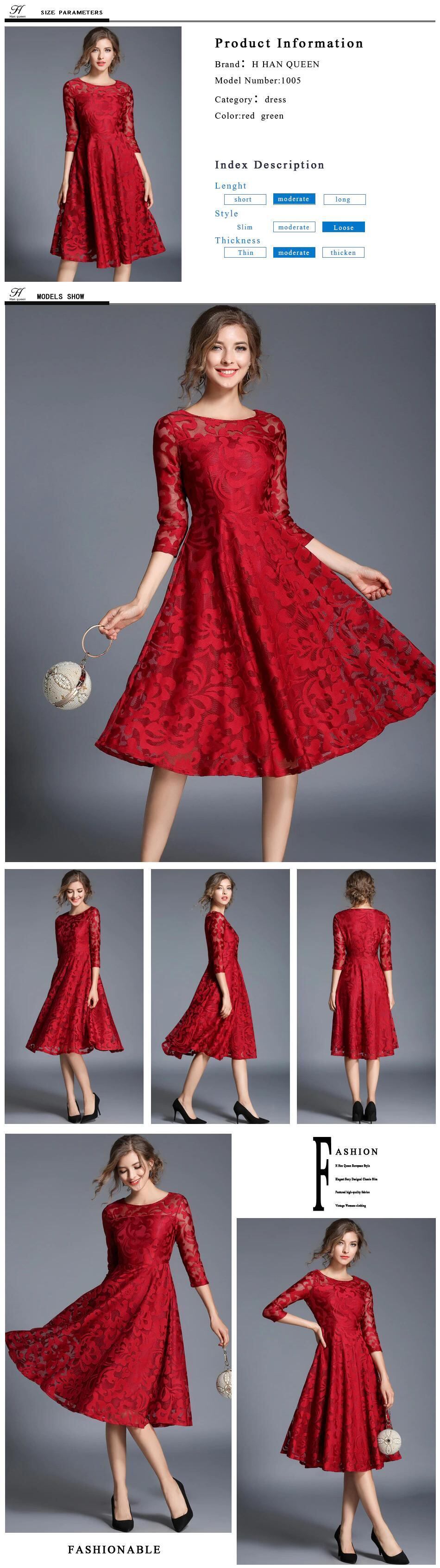 レッド ブルー レース オータム 秋物 ドレス Oネック Aライン スリム ビンテージ A-HHan7639910001