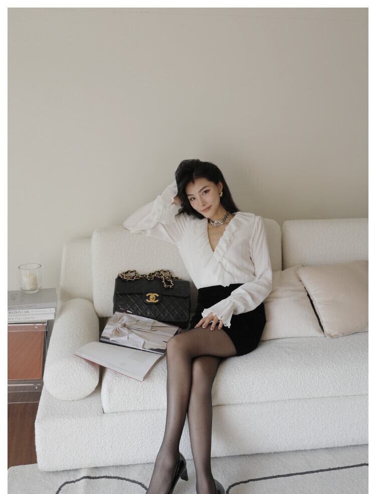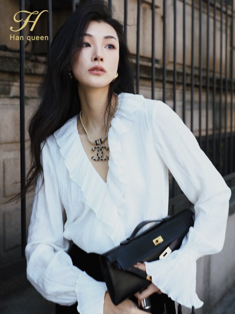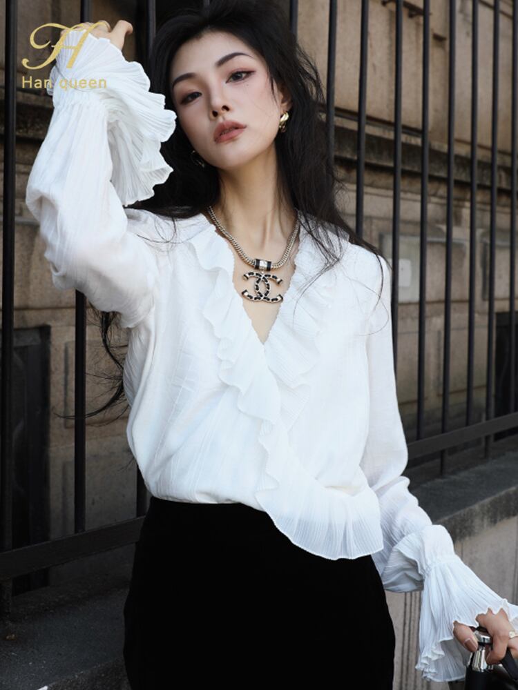 フレアスリーブ シフォン フリル ラッフル ブラウス オータム 秋物 ウィンター 冬物 Vネック ビンテージ A-HHan26322788580