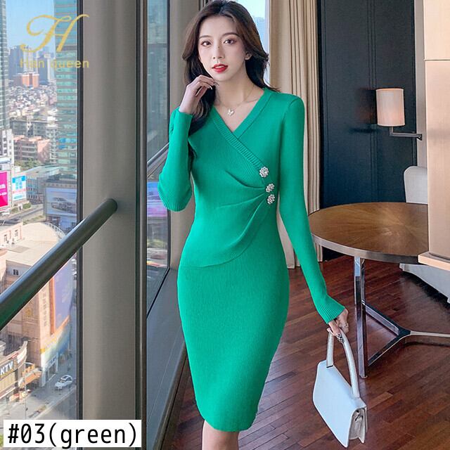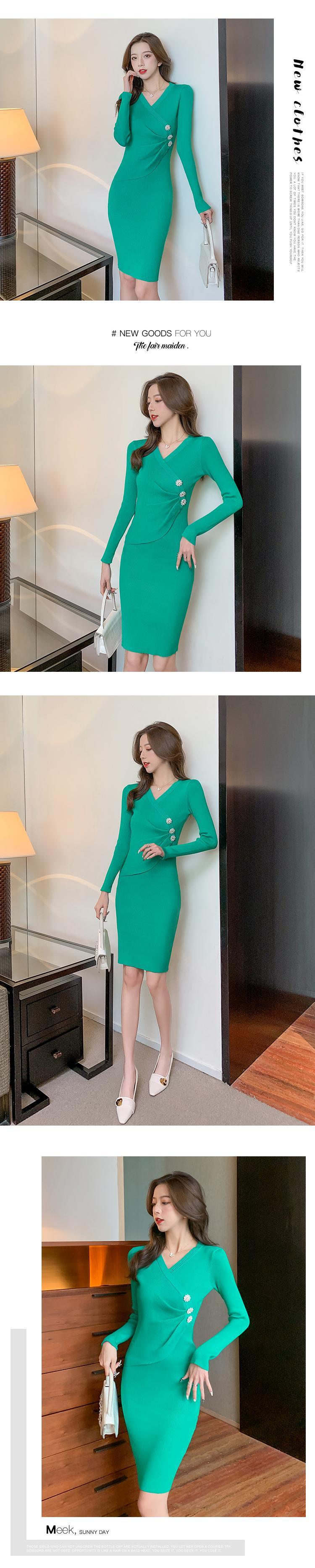 エラスティック 伸縮 ドレス Vネック 会社 学校 通勤や通学にも A-HHan71918016747