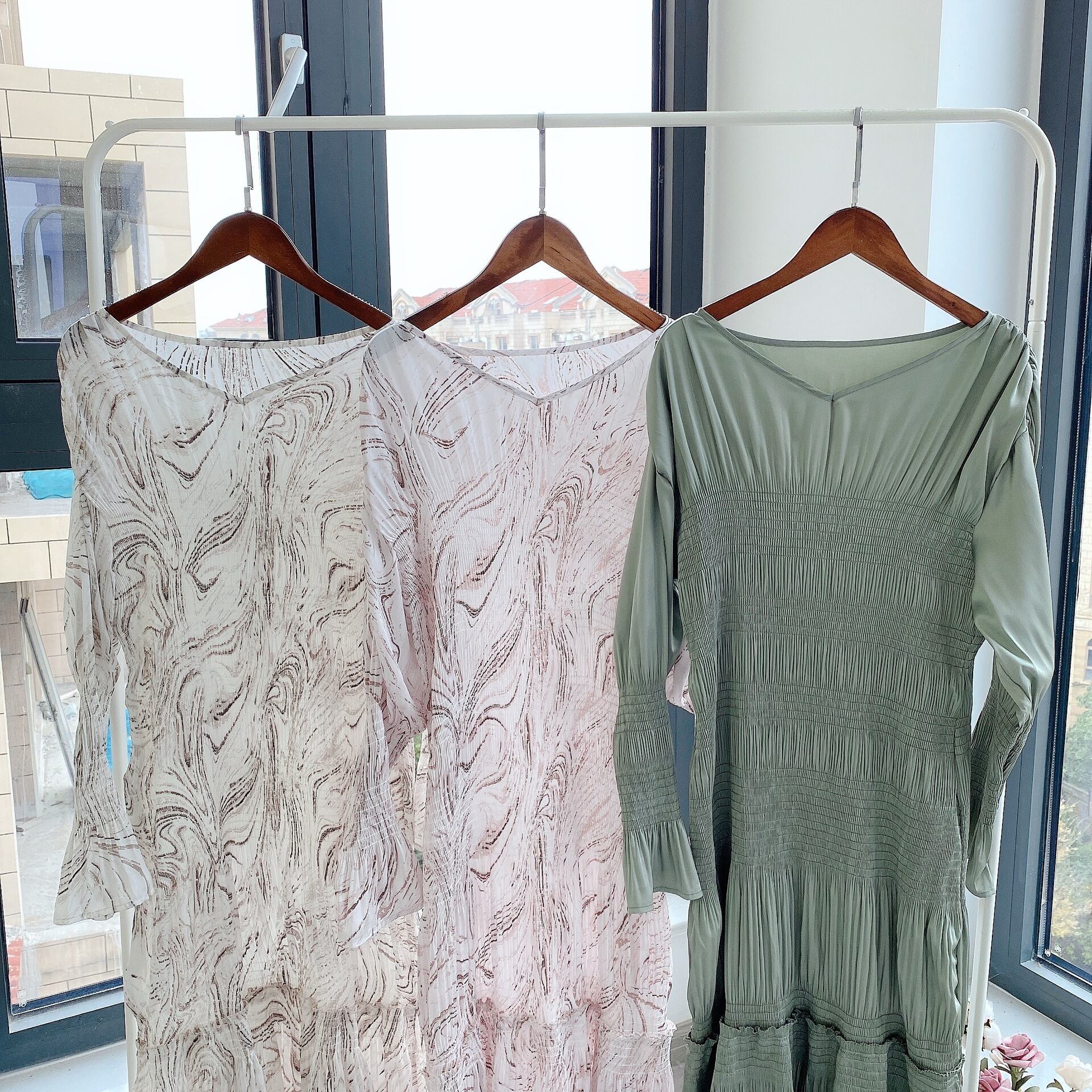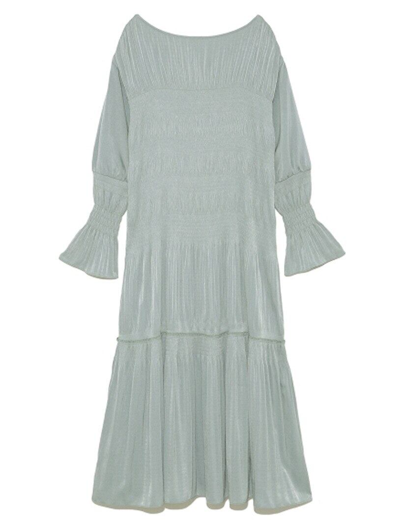 フレアスリーブ 大人ガーリー スウィート キュート カジュアル プリーツ スプリング 春物 ドレス Oネック スリム JPLS83192146541