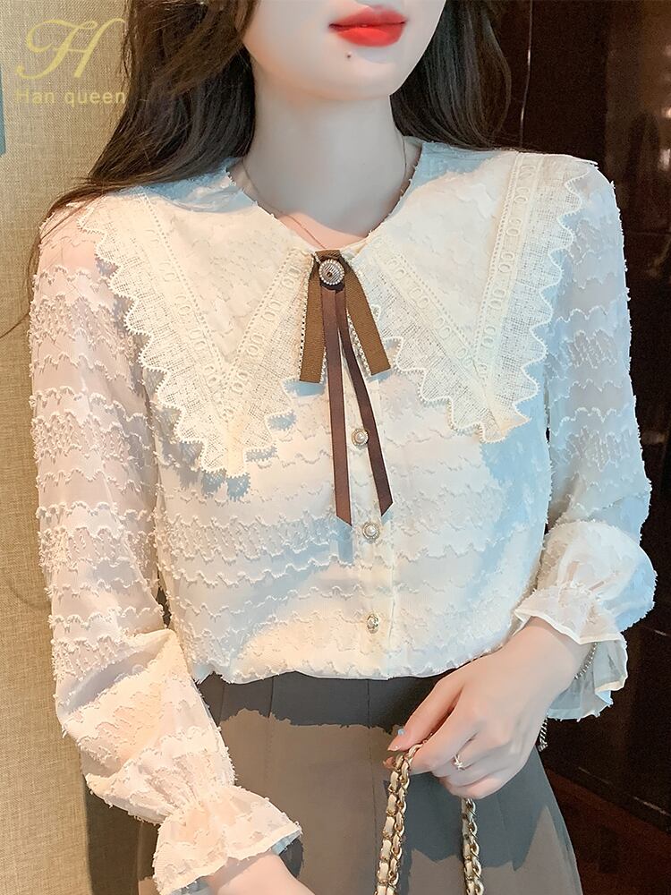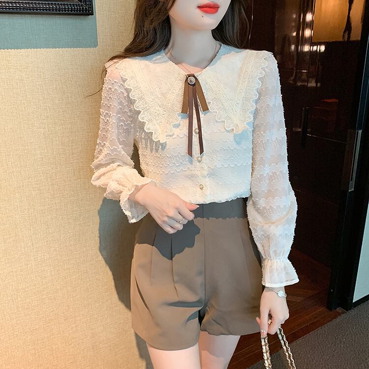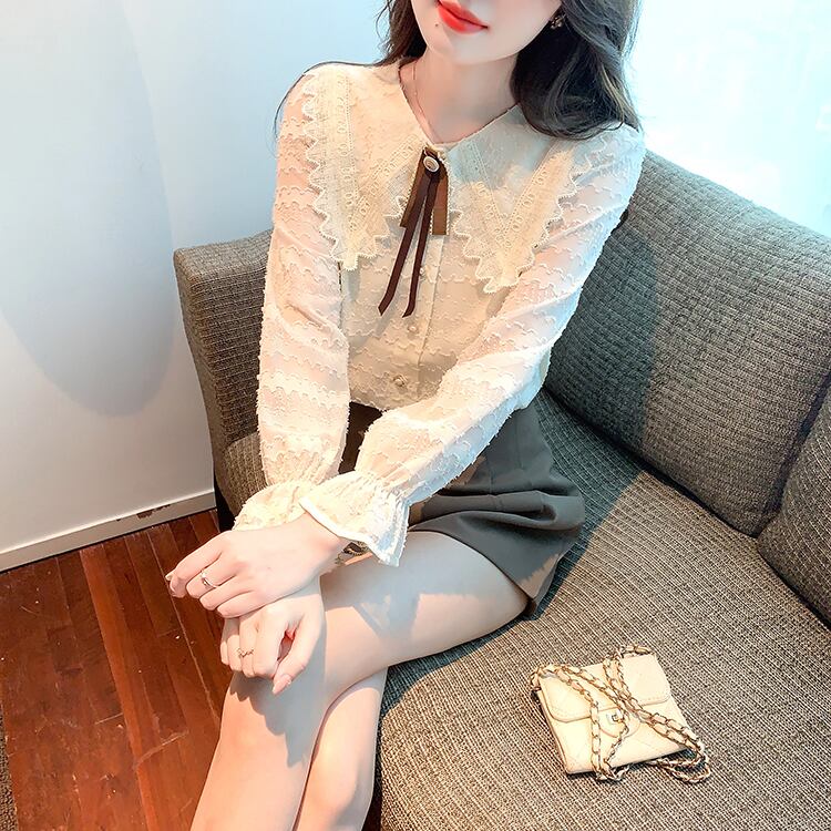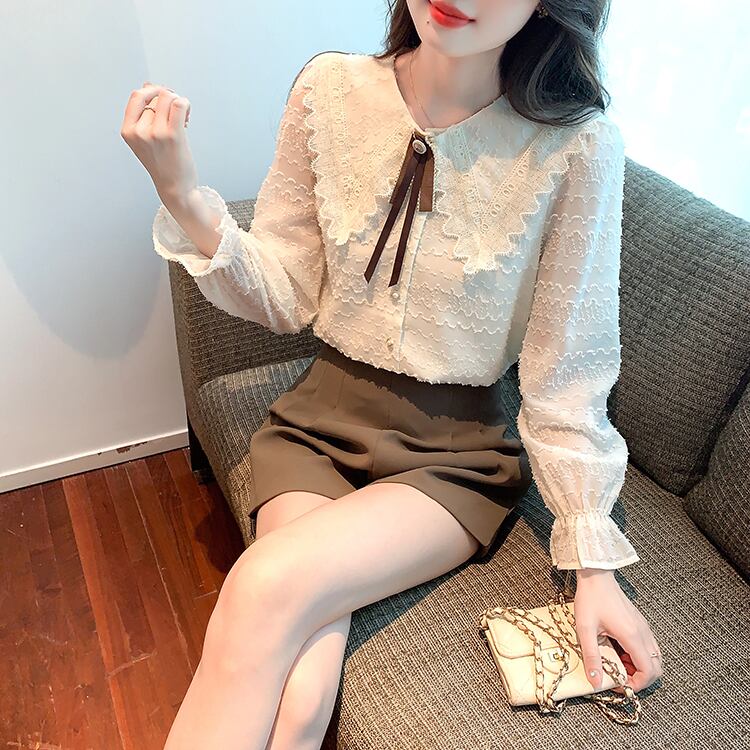 ロング レース 長袖 シャツ ブラウス オータム 秋物 ビンテージ 会社 学校 通勤や通学にも A-HHan37229794595