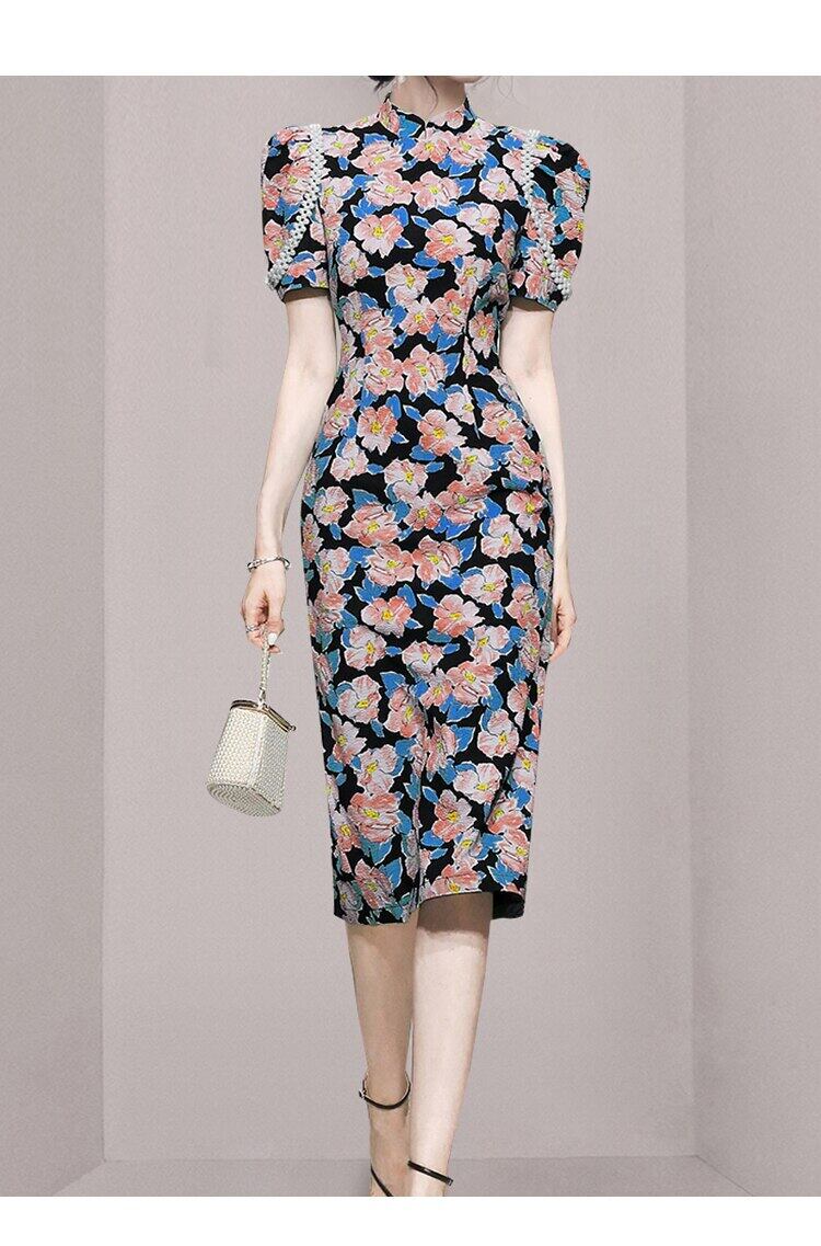 サマー 夏物 ドレス 花柄 ビンテージ 会社 学校 通勤や通学にも A-HHan36797982741