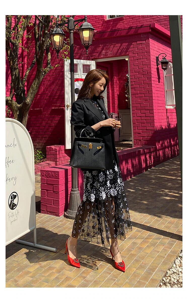ロング レッド 刺繍 サマー 夏物 ドレス Aライン スリム 会社 学校 通勤や通学にも A-HHan95380852589