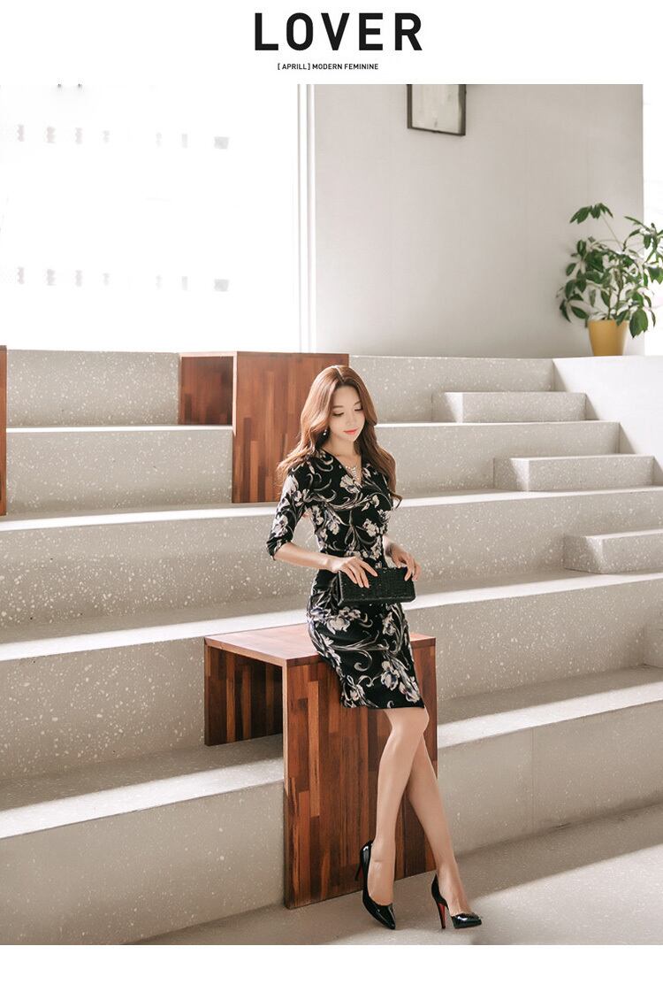 スプリング 春物 ドレス Vネック ビンテージ 会社 学校 通勤や通学にも A-HHan99844999587