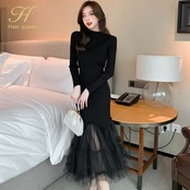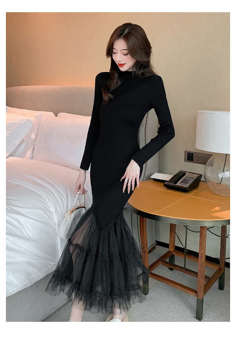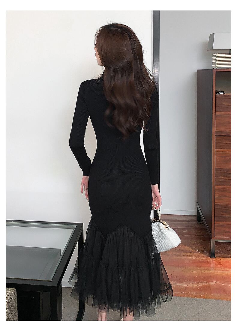 ブラック メッシュ ドレス スリム ステッチ 会社 学校 通勤や通学にも A-HHan21336486774