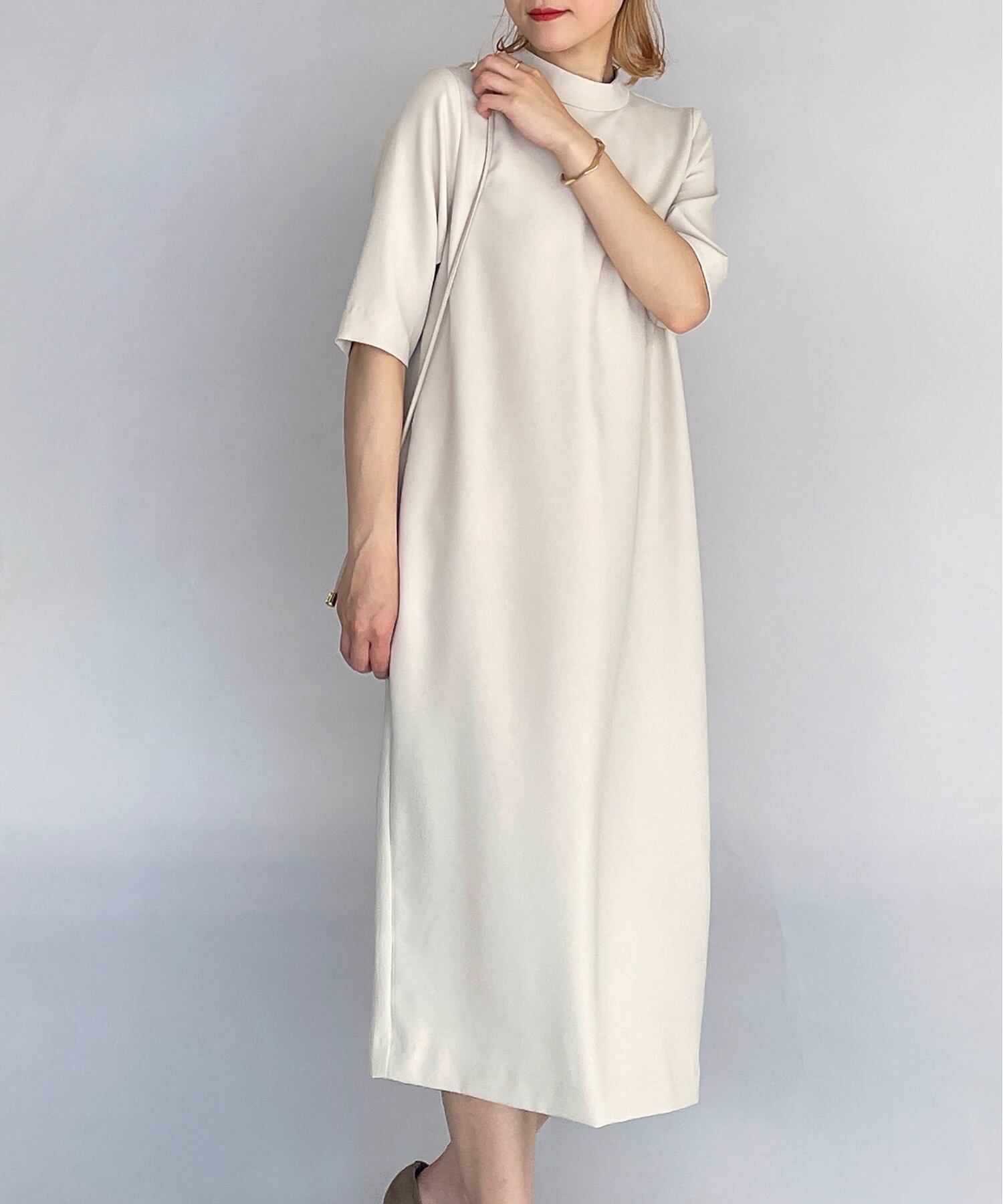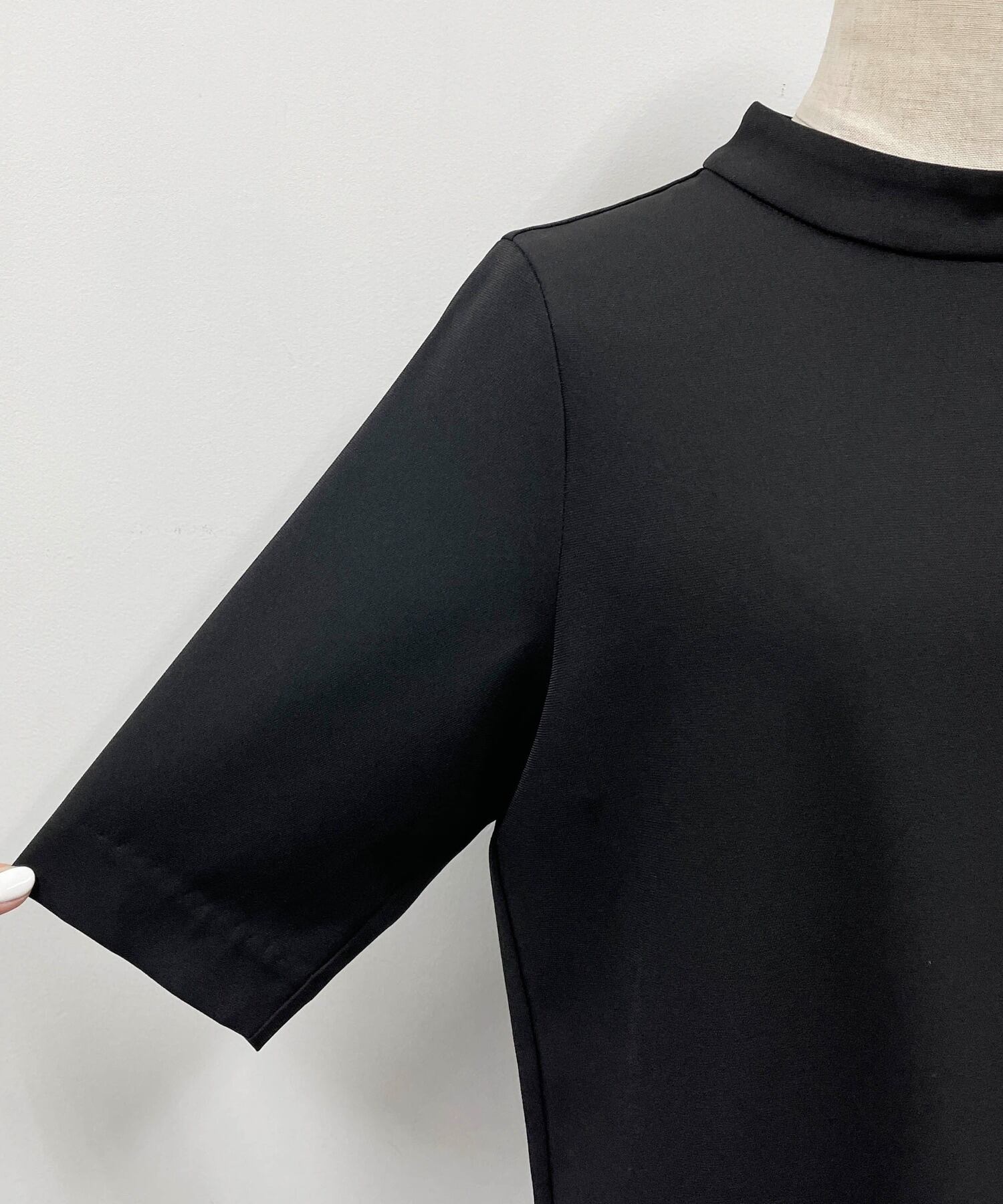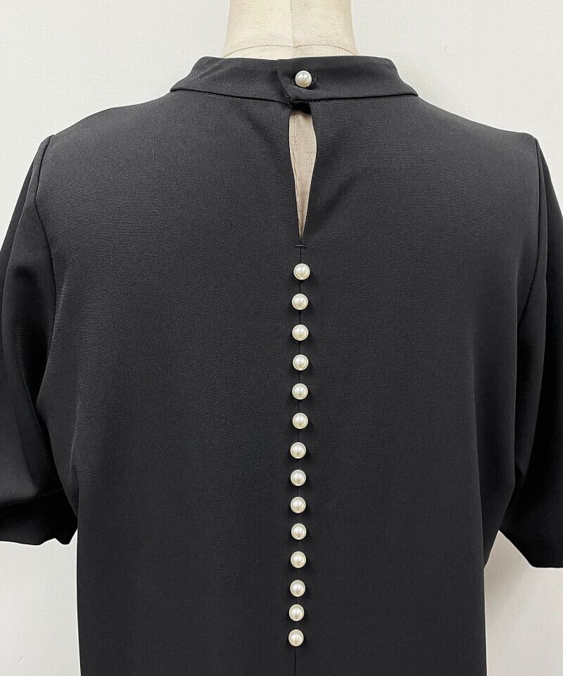 ショート 半袖 ハーフスリーブ スプリング 春物 Oネック スリム パール 真珠 ソリッドカラー JPLS89818484790