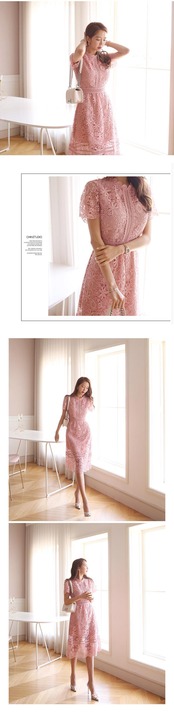 レース サマー 夏物 ドレス Oネック スリム 会社 学校 通勤や通学にも A-HHan16728593743