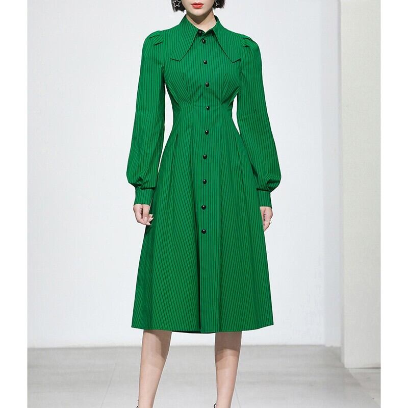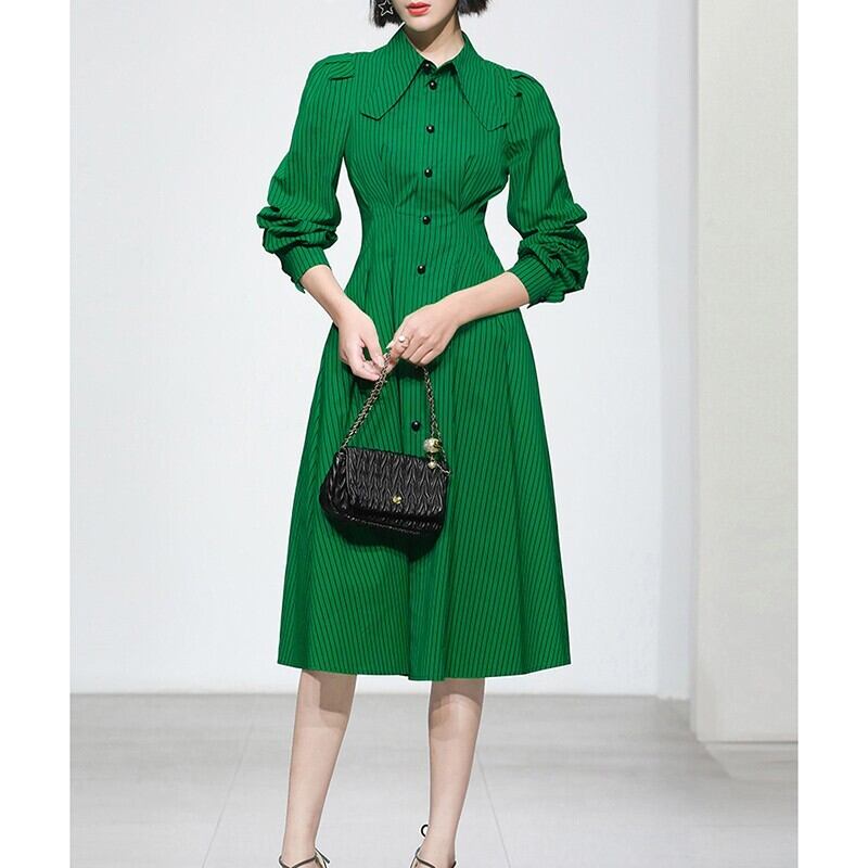 ロング 長袖 オータム 秋物 ドレス ストライプ 会社 学校 通勤や通学にも A-HHan49355379067
