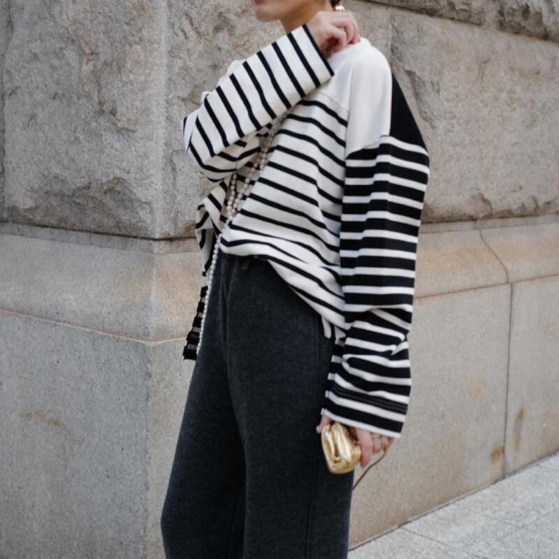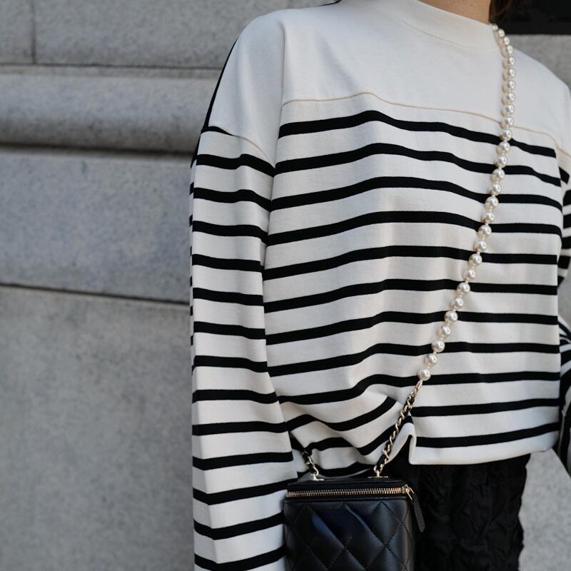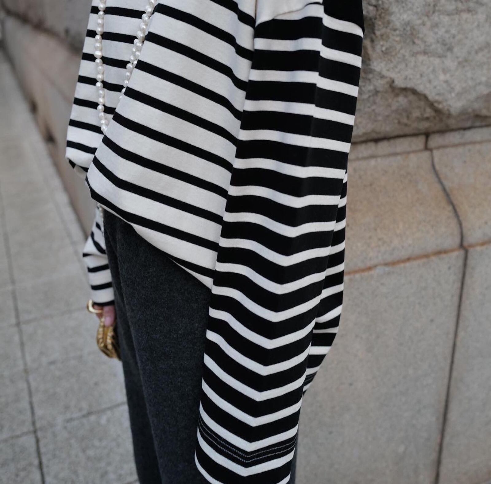 シャツ スプリング 春物 Oネック ストライプ スリム Tシャツ JPLS26920862886
