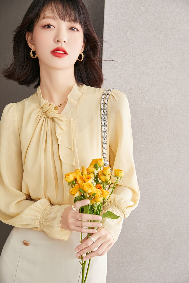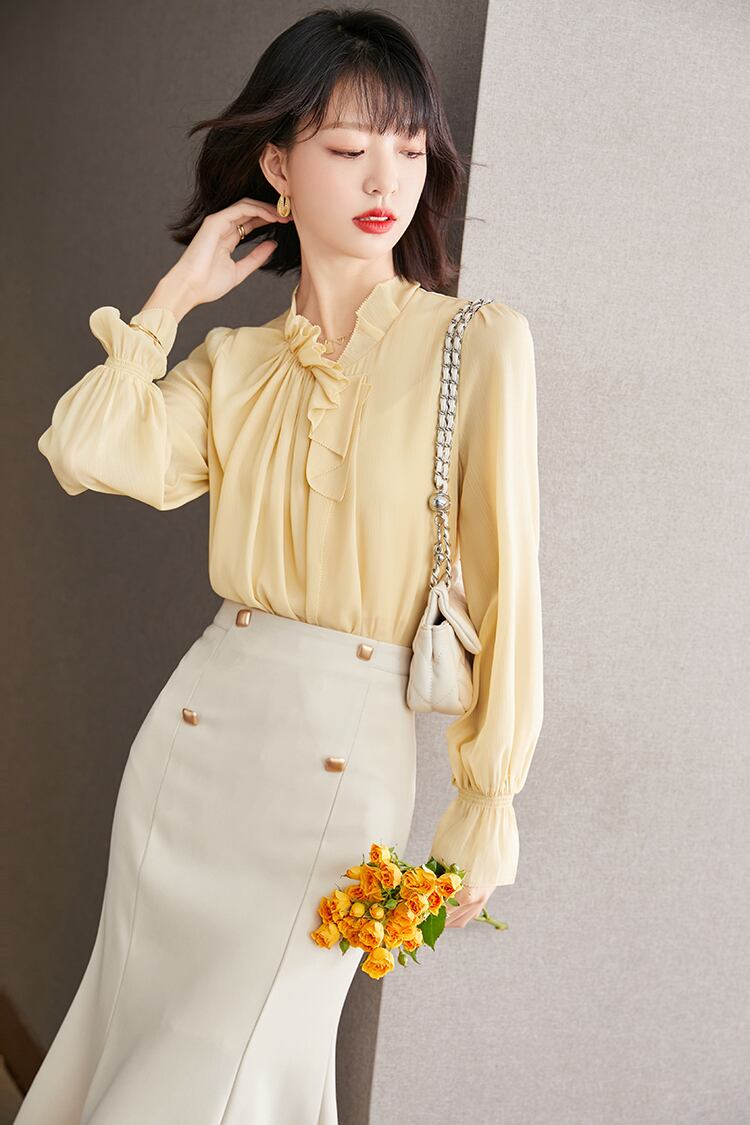 ロング シフォン 長袖 シャツ ブラウス オータム 秋物 ビンテージ A-HHan13839929841