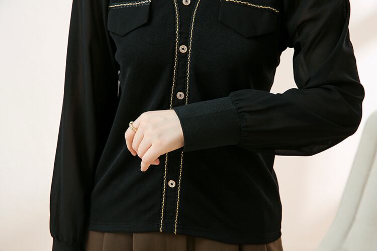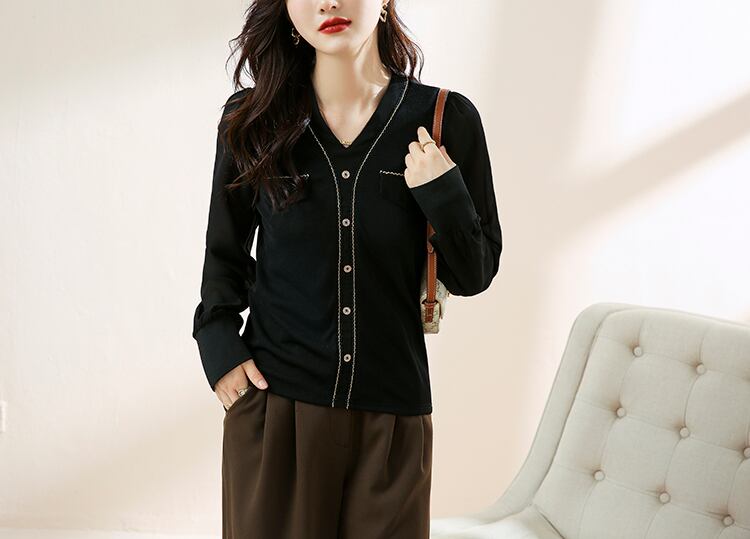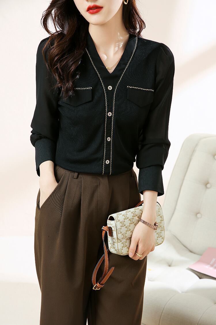 シフォン シャツ ブラウス オータム 秋物 Vネック ビンテージ 会社 学校 通勤や通学にも A-HHan90405578538