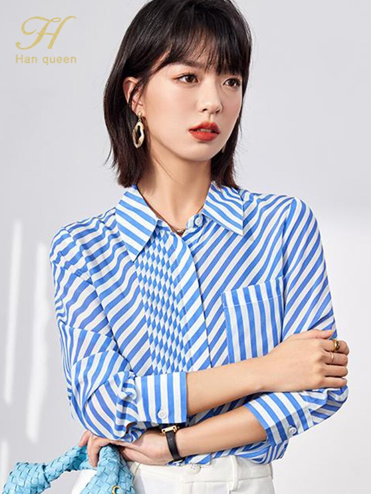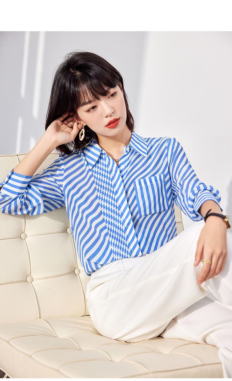 ブルー シフォン ブラウス ストライプ ビンテージ A-HHan10442058288