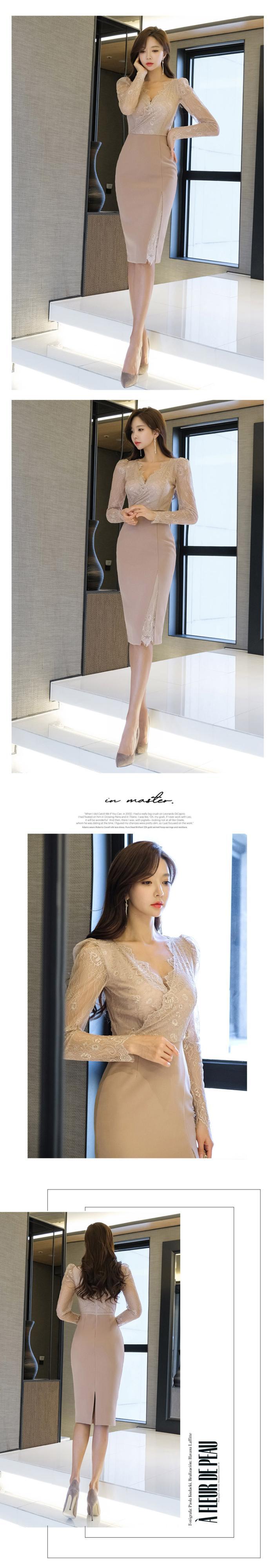 ロング レース 長袖 スプリング 春物 ドレス Vネック スリム A-HHan76927020487