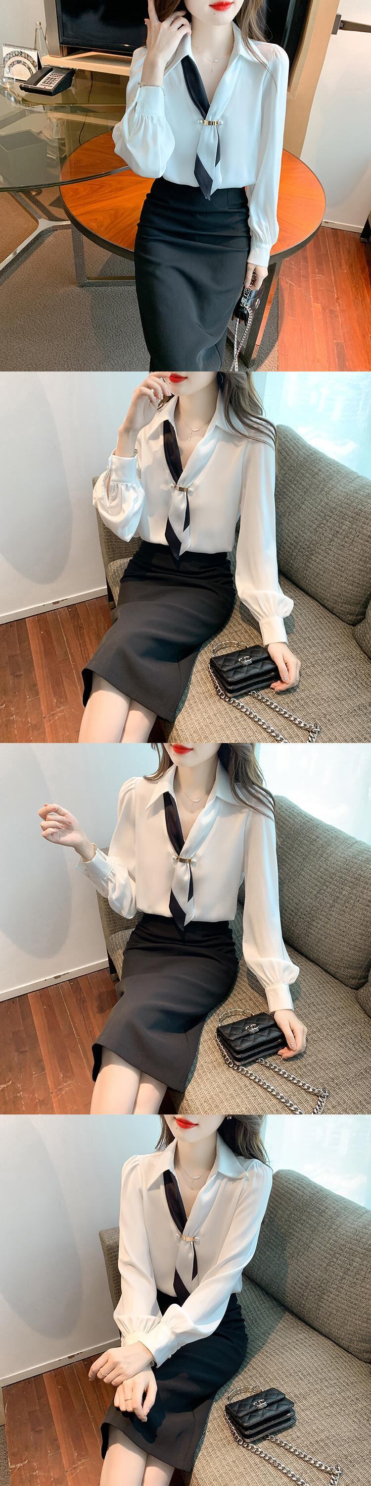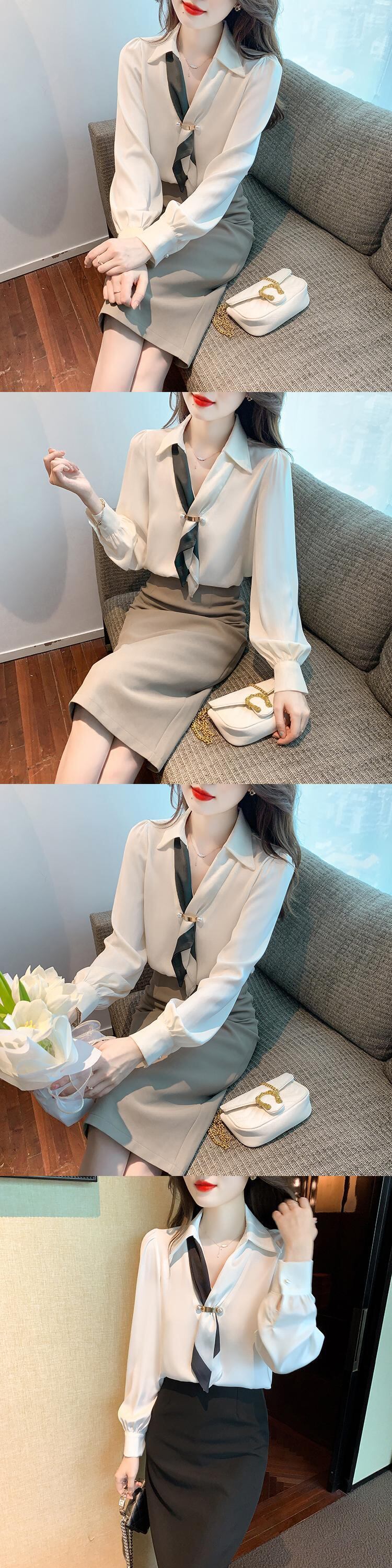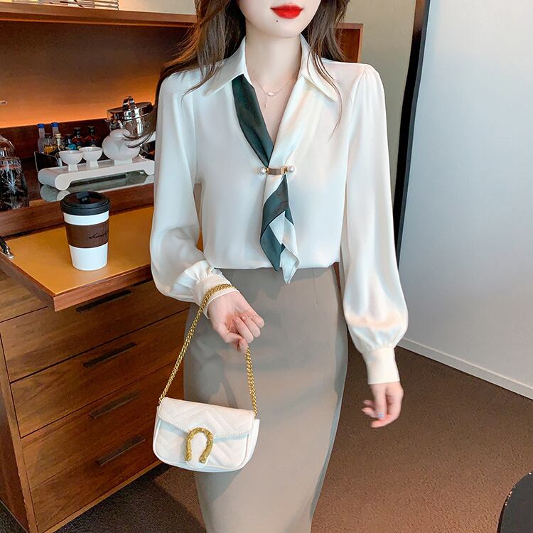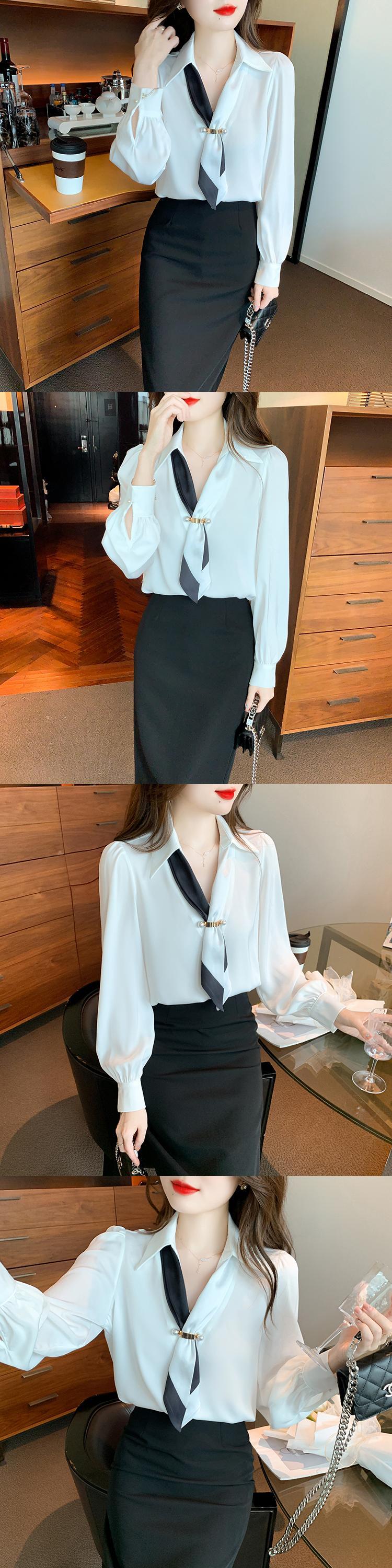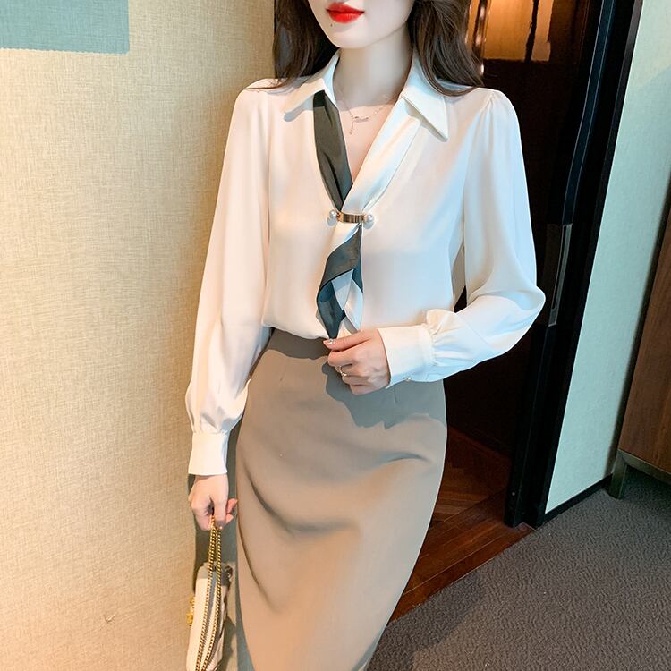 ロング シフォン 長袖 シャツ ブラウス オータム 秋物 ビンテージ 会社 学校 通勤や通学にも A-HHan50063347195