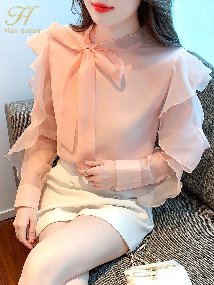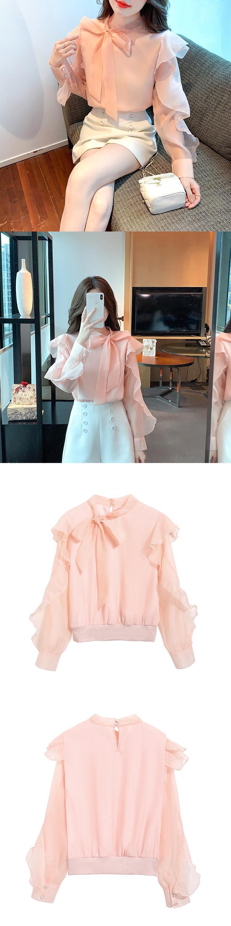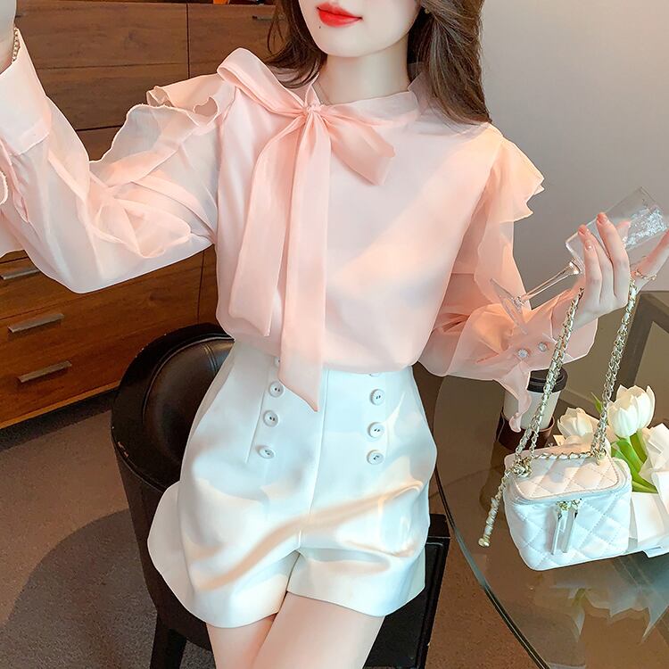 リボン レース フリル ラッフル シャツ ブラウス オータム 秋物 レースアップ ビンテージ A-HHan20050950436