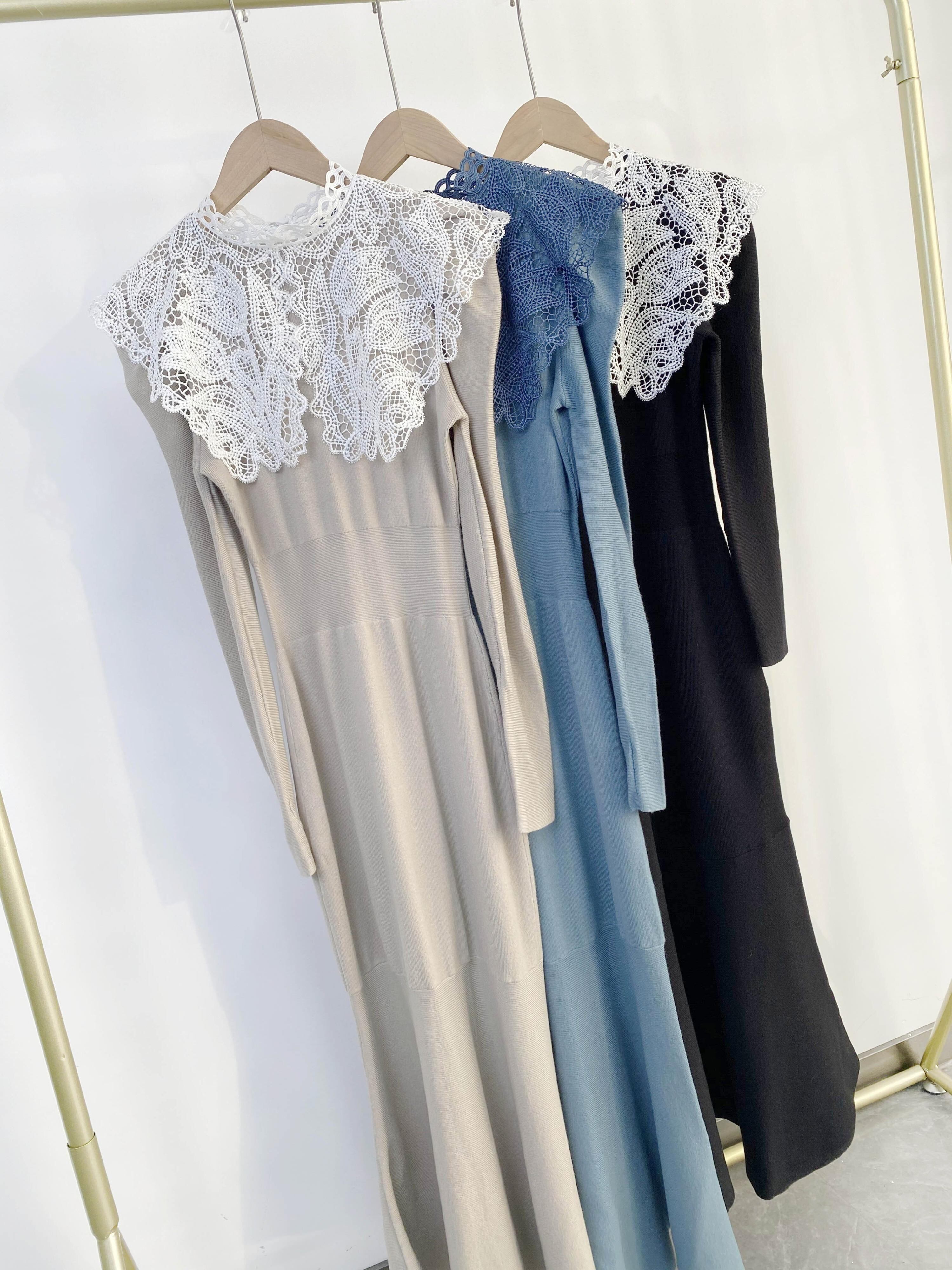 ロング レース 長袖 ドレス スリム ソリッドカラー JPLS79234590912