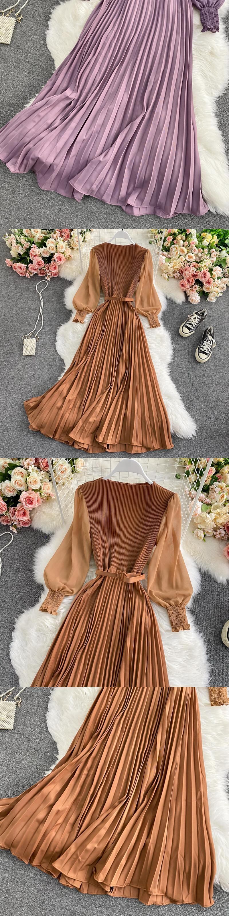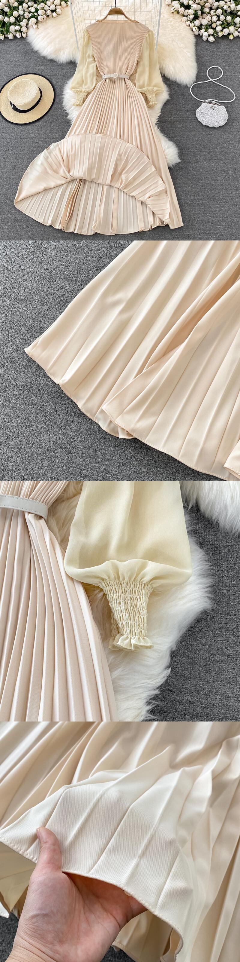 ロング 長袖 プリーツ スプリング 春物 サマー 夏物 Aライン ソリッドカラー A-KUAY59497971555