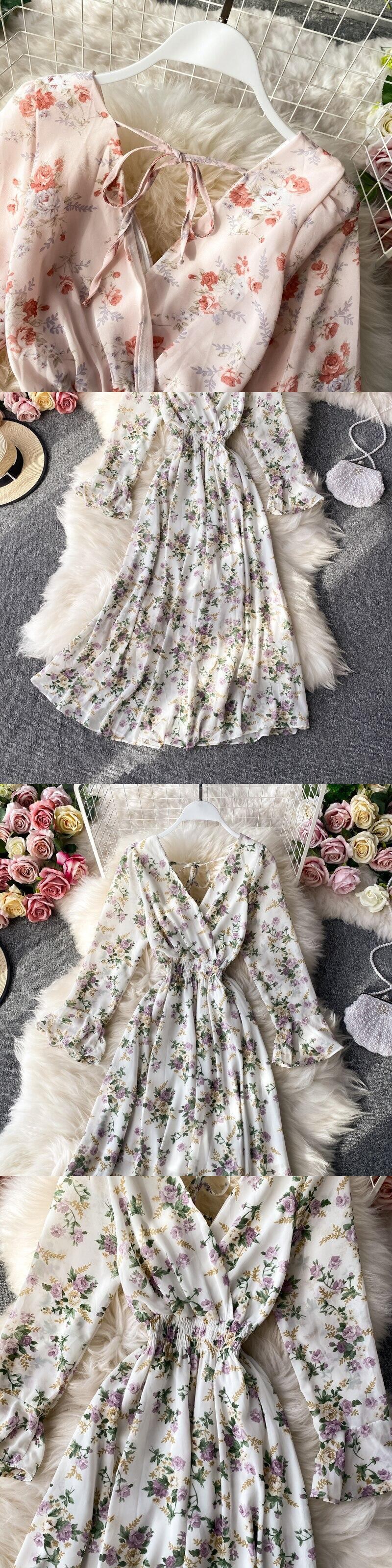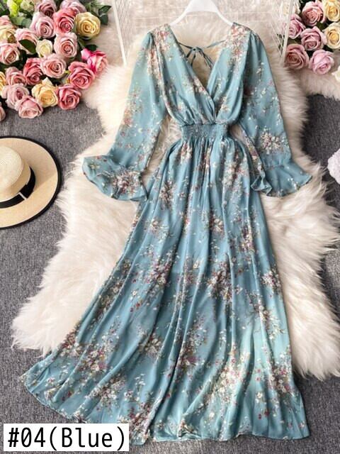 ロング 長袖 スプリング 春物 サマー 夏物 花柄 Vネック スリム A-KUAY4892477375
