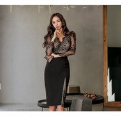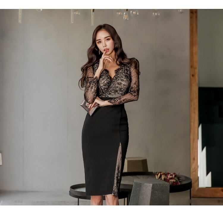 レース ドレス スリム ビンテージ ステッチ 会社 学校 通勤や通学にも A-HHan43394889696