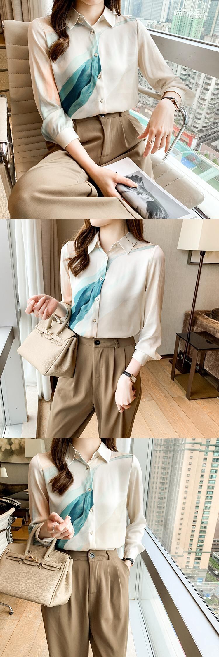 シフォン シャツ ブラウス オータム 秋物 ビンテージ 会社 学校 通勤や通学にも A-HHan65482318988