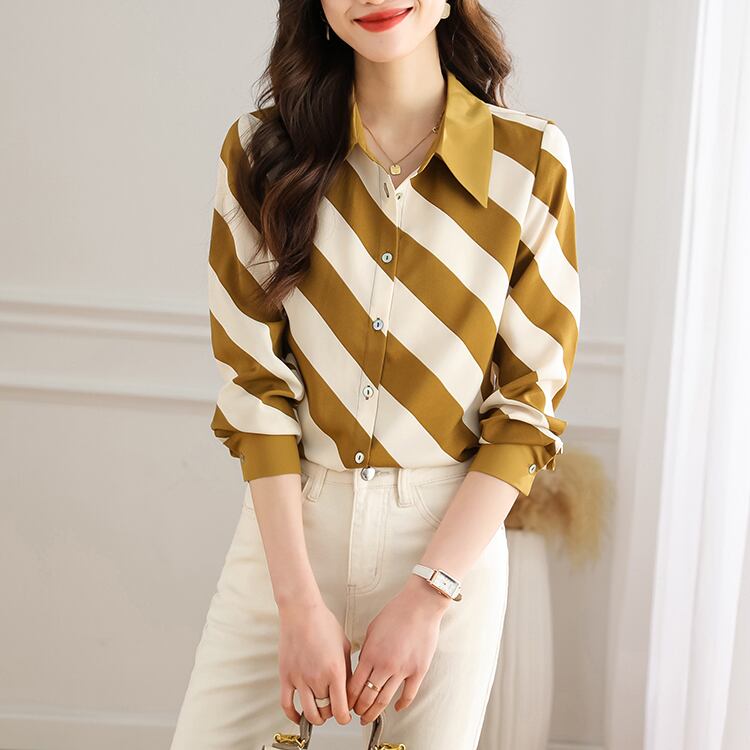 シフォン シャツ ブラウス スプリング 春物 ストライプ ビンテージ A-HHan21140721029