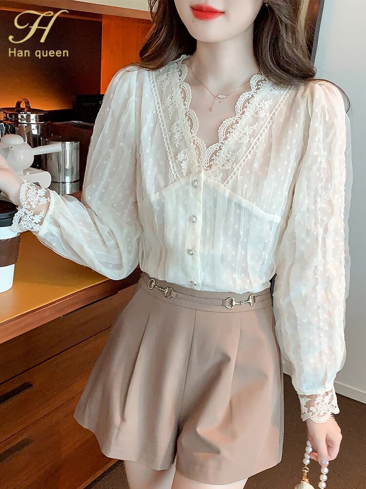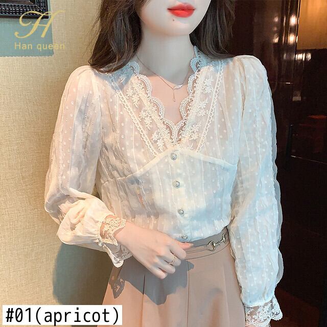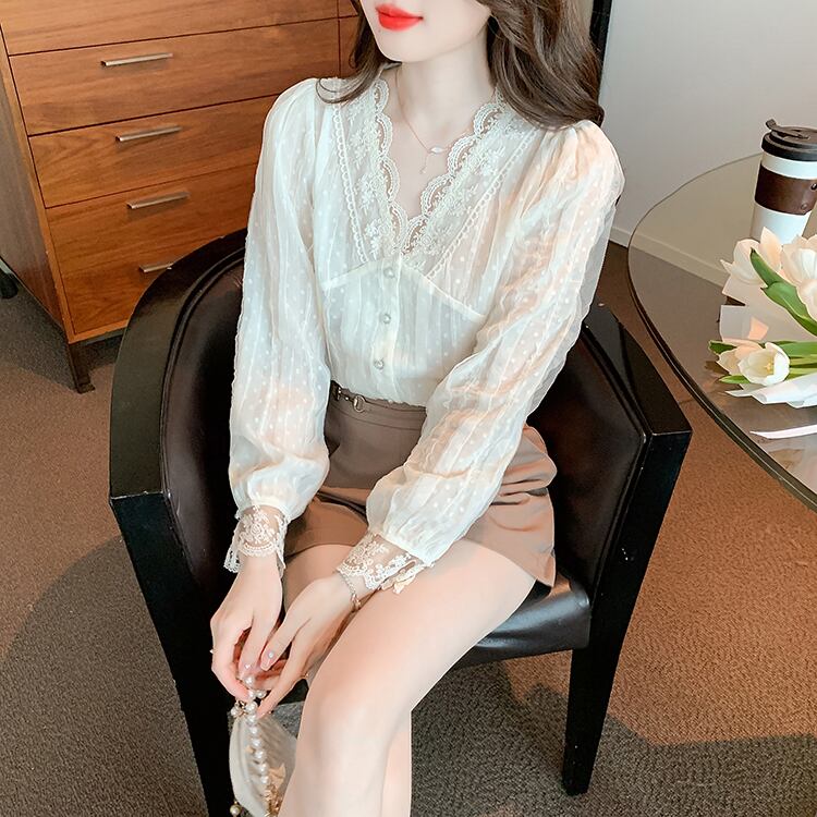 レース シャツ ブラウス オータム 秋物 Vネック ビンテージ 会社 学校 通勤や通学にも A-HHan20962358673