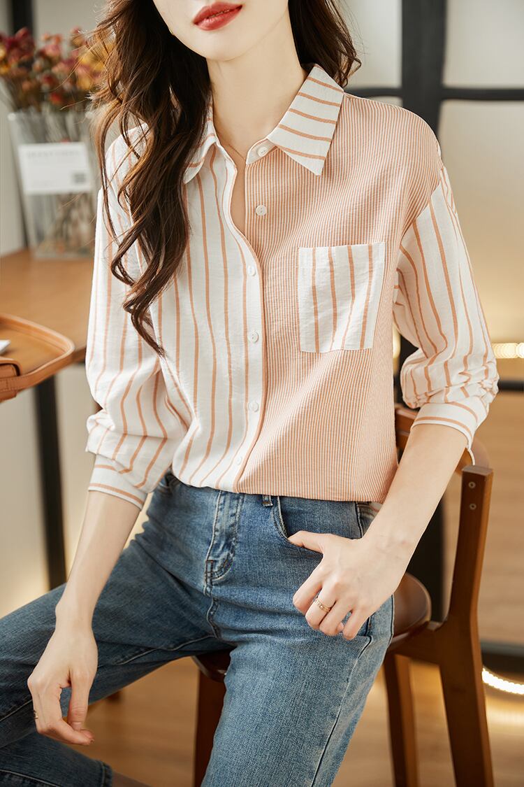 シフォン シャツ ブラウス オータム 秋物 ストライプ ビンテージ 会社 学校 通勤や通学にも A-HHan47027645762
