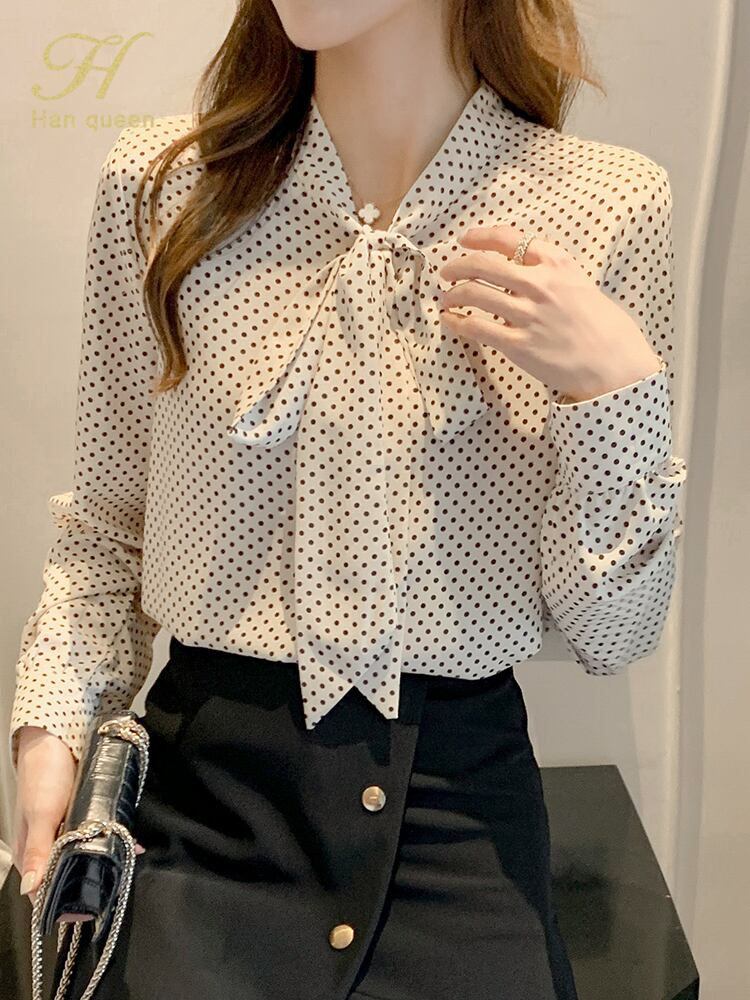 ロング リボン レース 長袖 ブラウス オータム 秋物 レースアップ ビンテージ 会社 学校 通勤や通学にも A-HHan21664501885