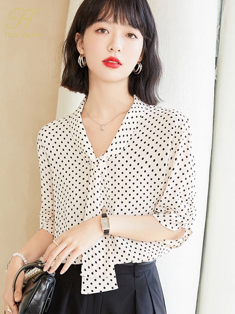 シフォン レース シャツ ブラウス サマー 夏物 Vネック レースアップ ビンテージ 会社 学校 通勤や通学にも A-HHan768196001