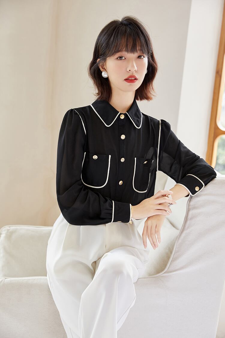 シフォン ブラウス スプリング 春物 オータム 秋物 会社 学校 通勤や通学にも A-HHan83810564087