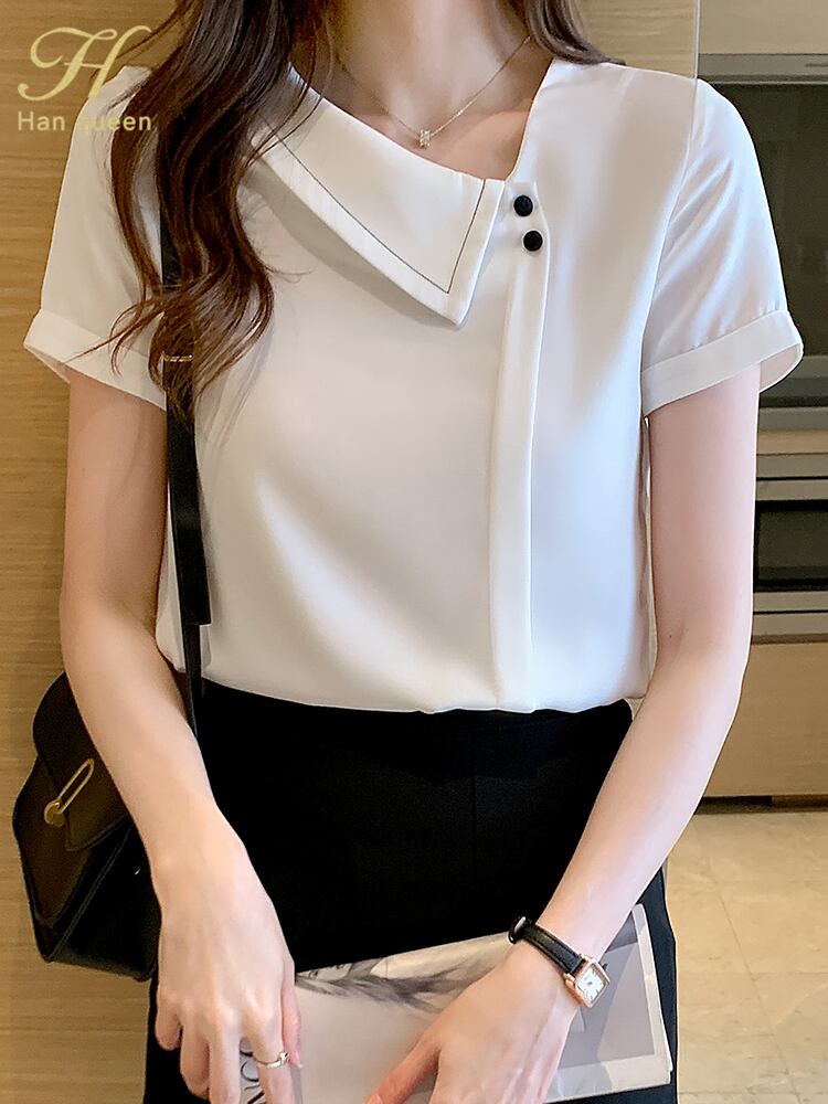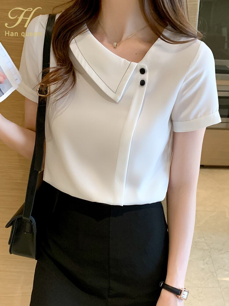ホワイト シフォン シャツ ブラウス サマー 夏物 ビンテージ 会社 学校 通勤や通学にも A-HHan47281347391