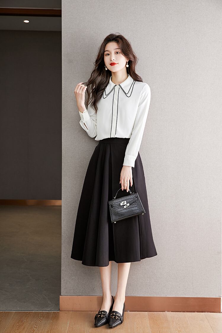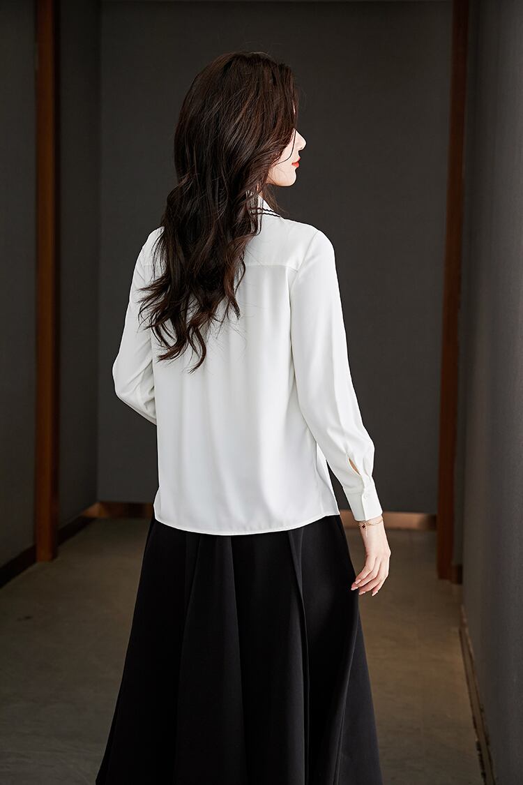 ロング ホワイト シフォン 長袖 シャツ ブラウス ビンテージ 会社 学校 通勤や通学にも A-HHan14985091043