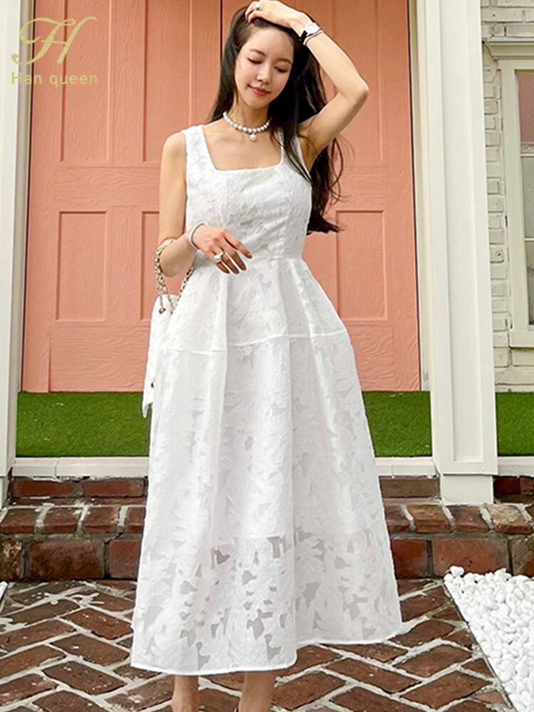 ロング ホワイト ブラック レトロ サマー 夏物 ドレス スリム 会社 学校 通勤や通学にも A-HHan67816462722