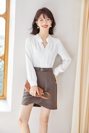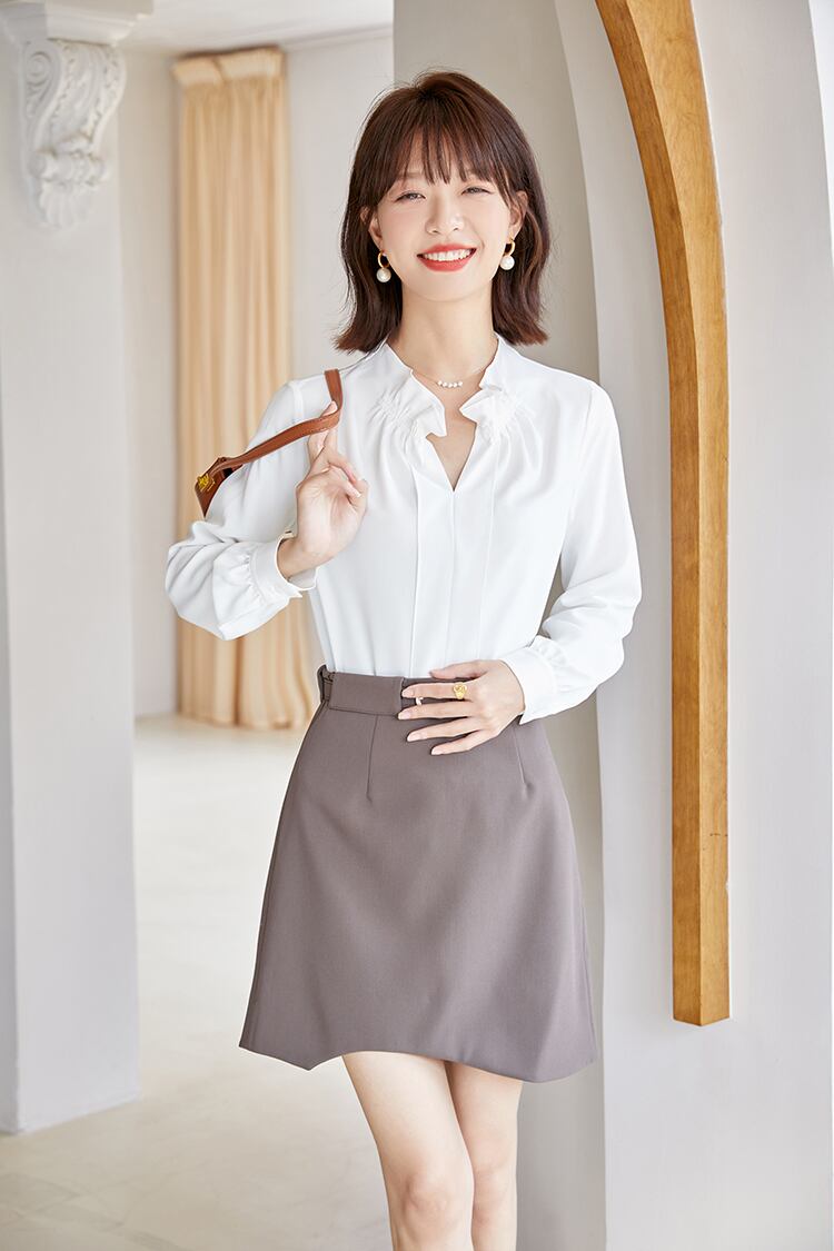 ロング ホワイト ブラック シフォン 長袖 シャツ ブラウス スプリング 春物 ビンテージ 会社 学校 通勤や通学にも A-HHan38821876244