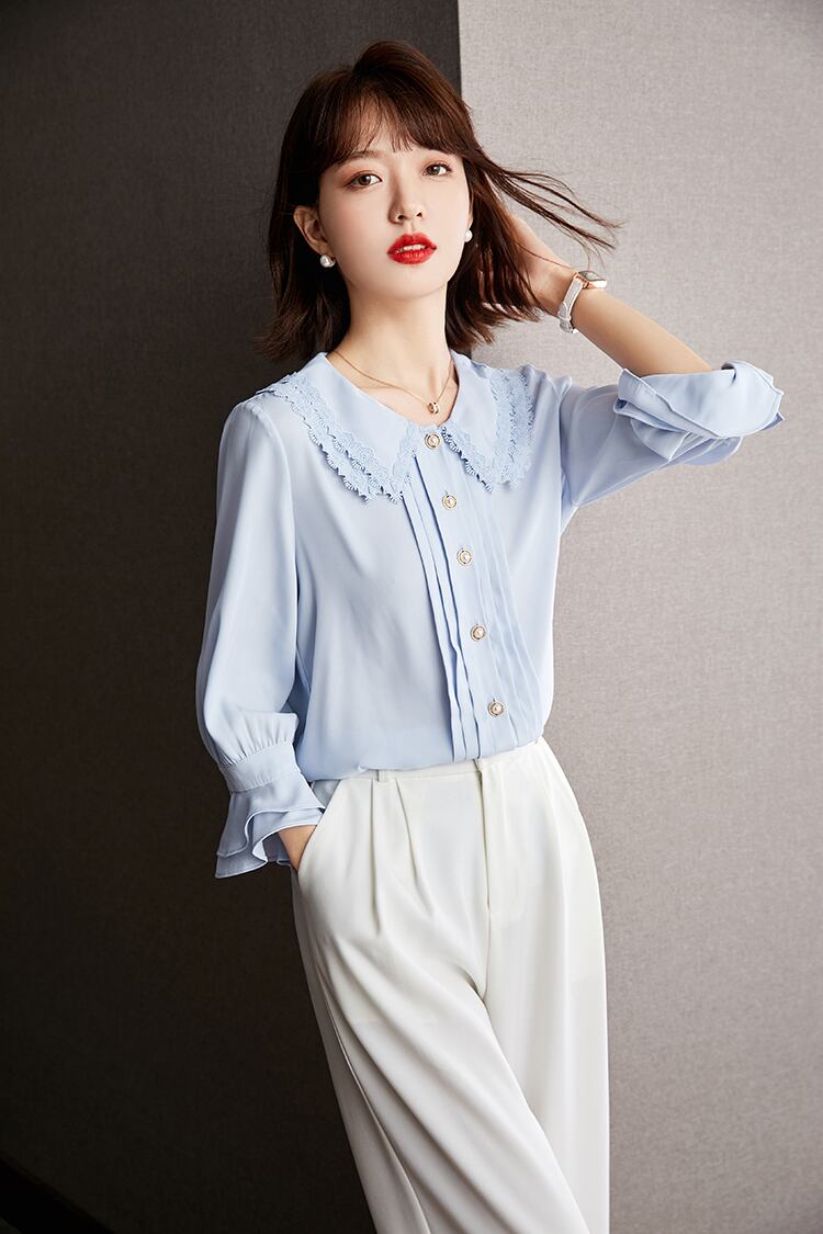 ロング シフォン 長袖 シャツ ブラウス オータム 秋物 ビンテージ 会社 学校 通勤や通学にも A-HHan53512001365