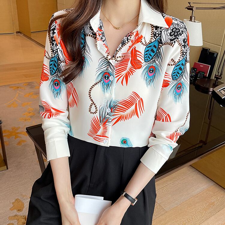 ロング シフォン 長袖 ブラウス オータム 秋物 会社 学校 通勤や通学にも A-HHan6352141735