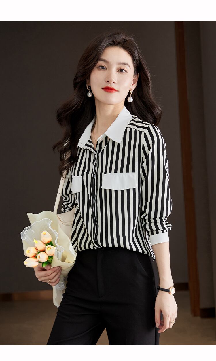 ロング 長袖 シャツ ブラウス スプリング 春物 オータム 秋物 ストライプ 会社 学校 通勤や通学にも A-HHan16498805215