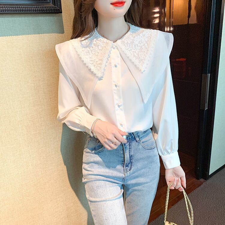 ロング ホワイト シフォン 長袖 シャツ ブラウス オータム 秋物 ビンテージ 会社 学校 通勤や通学にも A-HHan41608429190