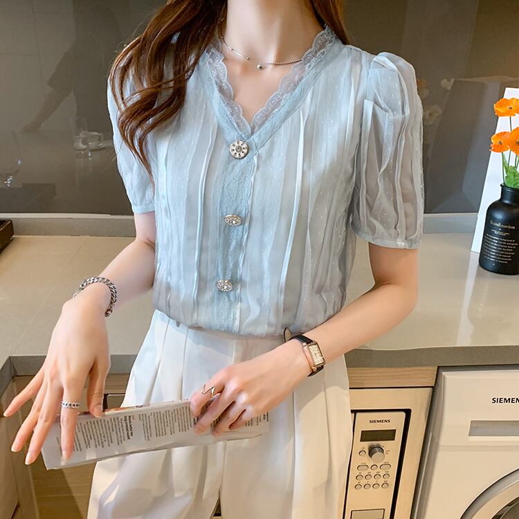 ブラウス スプリング 春物 サマー 夏物 Vネック 会社 学校 通勤や通学にも A-HHan31704221237