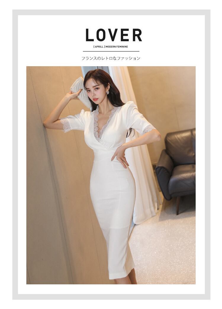 ホワイト サマー 夏物 ドレス Vネック スリム ビンテージ 会社 学校 通勤や通学にも A-HHan12939434411