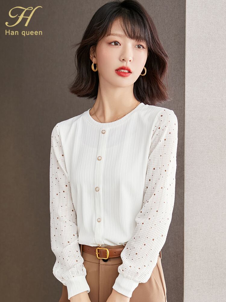 ロング シフォン 長袖 シャツ ブラウス オータム 秋物 ビンテージ 会社 学校 通勤や通学にも A-HHan26409616170